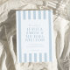 Create your own personalized wedding invitations featuring modern typography and striped dusty blue color pattern background