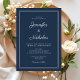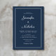 Elegant Modern Navy Blue Script Wedding Invitation.