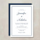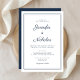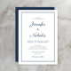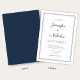 Elegant Modern Navy Blue Script Wedding Invitation.