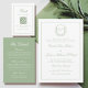 Convites Elegant Monogram Crest Sage Green Wedding