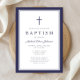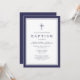 Elegant Navy Blue Cross Baptism Invitation.