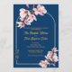 Elegant Navy Blue Magnolia Floral Wedding Invitation with Gold Arch .