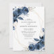 Convites Elegant Navy Blue Silver Geometric Floral Wedding