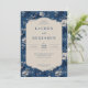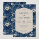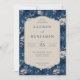 This elegant wedding invitation features a sophisticated navy blue background adorned with lush floral illustrations, creating a romantic and classic atmosphere. The central cream-colored frame highlights the event details in a mix of bold and delicate serif fonts, ensuring clarity and visual appeal. With its vintage botanical theme and soft color contrasts, this design exudes formality and warmth, making it perfect for couples seeking a timeless and inviting aesthetic for their special day.