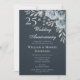 Convites Elegant Navy Floral 25th Wedding Anniversary
