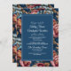 Convites Elegant Navy Floral Teal RSVP QR code Wedding