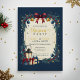 This elegant Christmas party invitation features a navy background, classic gold accents, festive greenery, and a warm lantern with wrapped gifts. The hand-painted style adds a cozy holiday charm perfect for winter gatherings. Ideal for hosts who want a traditional, timeless Christmas aesthetic with rich colors and seasonal details.