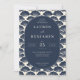 This elegant wedding invitation features a sophisticated navy blue background adorned with stylized seashell motifs, creating a luxurious and textured feel. The central oval frame showcases customizable text in a classic serif font, emphasizing formality and tradition. Perfect for a formal celebration, the design conveys an atmosphere of elegance and anticipation, making it ideal for couples seeking a timeless and refined look for their special day.