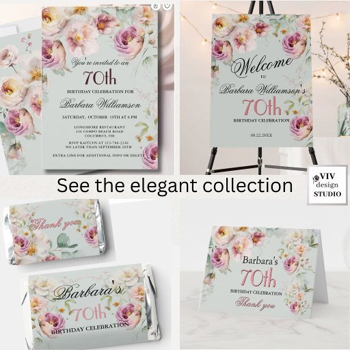 Elegant Floral Painted 70th Birthday InvitationsCriado por Vivian Dye