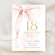 Elegant pink bow 18th birthday invitation. Feminine design in blush pink and gold. Features trendy watercolor coquette bow, and modern typography font. Perfect for an elegant style women's bday celebration. Personalize with your own details. Printed Zazzle invitations or instant download digital printable template.