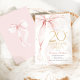 Elegant pink bow 20th birthday invitation. Feminine design in blush pink and gold. Features trendy watercolor coquette bow, and modern typography font. Perfect for an elegant style women's bday celebration. Personalize with your own details. Printed Zazzle invitations or instant download digital printable template.