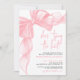 This cute pink bow bridal shower invitation features a cute pink watercolor bow with flowing ribbons along the top and left edges for a sweet, playful look. The phrase “She’s tying the knot!” sits in the bottom right in a charming mix of script and serif fonts, keeping the design light, feminine, and fun. The front and back both use a simple pink background for a clean, cohesive feel.