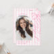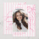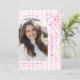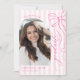 Mark your graduation milestone with this elegant and sweet announcement card. The design boasts a lovely pink ribbon bow illustration against a backdrop of classic pink and white stripes, creating a charming aesthetic. This card also includes a designated area for a cherished photograph, personalizing your announcement. It's an ideal way to inform your loved ones about your graduation and invite them to celebrate with you. The delicate design adds a touch of sophistication to your big day. Share your academic triumph with this beautiful and memorable graduation card, a perfect reflection of your hard work and dedication.