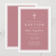 Elegant Pink Cross Girl Baptism Invitation.