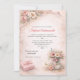 This pastel-toned illustration offers a charming and romantic backdrop for a birthday party invitation. Delicate floral arrangements—roses, peonies, daisies—adorn the corners, each tied with a pink gingham ribbon, while a soft yellow butterfly and a pink gift box add playful touches. A pair of gold rings near the jar hint at celebration and connection, though the overall mood remains light and festive. With its gentle textures and central blank space, the design invites joyful personalization, perfect for honoring someone special with elegance and warmth. The back of the card is a variation of the graphic on the front Personalize with your own information.