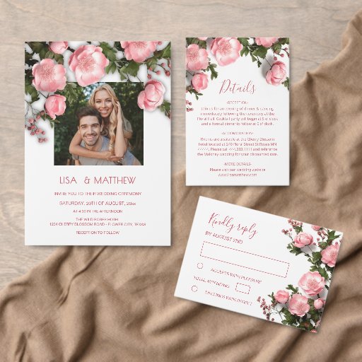 Convites Elegant Pink Greenery 3D Roses Wedding