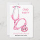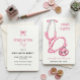 Convites Elegant Pink Stethoscope Nurse Doctor Graduation