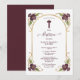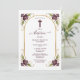 Elegant Plum Floral Gold Arch Baptism Celebration Invitation.