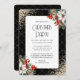 This elegant black Christmas party invitation featuring gold confetti, white poinsettia, holly with red berries and other winter botanicals is perfect for Christmas parties, holiday soirees, corporate events, holiday cocktail parties and more. Easily personalize this invitation with your party details.