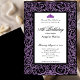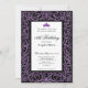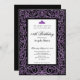 This elegant 18th debut birthday invitation has purple glitter scrollwork, a purple tiara crown, and a black background with a personalizable template to create your own message. The invitation template is customizable in the listing editor and is also available as a digital download that's printable after you personalize it. The formal design is a classic way to set an elegant tone for your milestone birthday celebration.