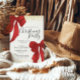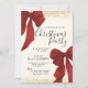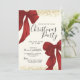 Elegant Christmas Party invitation template with red watercolour bow/ ribbons and gold glitter borders. All texts are 100% editable