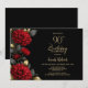Convites Elegant Red Floral Black 90th Birthday Party