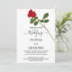 This beautiful wedding invitation features an elegant and romantic design with a single long-stemmed red rose.