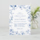 Convites Elegant Royal Blue Floral Garden QR Code Wedding