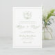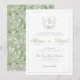 The front features a classic white layout framed by a soft sage border, adorned with a delicate botanical crest and monogram wreath, perfect for showcasing your wedding details in a clean, sophisticated style. The typography blends graceful script with refined serif fonts for a formal yet airy look. The back of the invitation is finished with a soft sage leafy pattern, adding depth, texture, and a coordinated botanical touch that feels both natural and luxurious.
