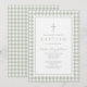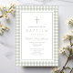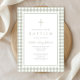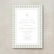 Elegant Sage Green Gingham Girl Baptism Invitation.