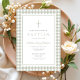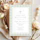 Convites Elegant Sage Green Gingham Girl Baptism