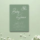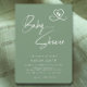 This elegant baby shower design was created for modern parents who love calm tones and timeless style. Soft sage green paired with flowing script typography and a sweet heart detail with baby footprints makes this invitation feel warm, minimal, and heartfelt—perfect for celebrating a little one on the way.
