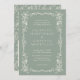 Invite your guests in timeless style with this Vintage Victorian Sage Green Floral Wedding Invitation, featuring an intricate white floral border on a muted sage green background. Inspired by Victorian elegance and vintage charm, this design blends classic botanical motifs with a modern minimalist layout — perfect for garden weddings, elegant manor celebrations, or romantic countryside events.