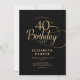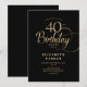 Convites Elegant Simple Black Gold Script 40th Birthday
