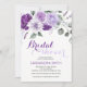 Modern and minimal Bridal Shower invitation featuring watercolor violet flowers and vibrant calligraphy text.