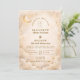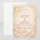 A refined celestial design featuring delicate crescent moons, scattered constellation stars, and a warm parchment-toned background. A thin gold border frames the layout, while elegant typography creates a timeless, sophisticated composition. The subtle vintage texture and balanced spacing give this piece a romantic, storybook feel without overwhelming the details. Perfect for couples who love classic elegance with a soft cosmic touch.