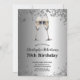 This elegant black and printed silver 70th birthday invitation is perfect for a classy party. This design features a pair of champagne glasses toasting cheers to 70 years, and is an elegant choice for a special event to celebrate a milestone birthday. Customize for your own birthday year, and search for "70" in my shop to see coordinating designs. Note: The foil is printed and not actual shiny foil!