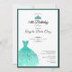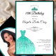 This elegant teal and black 18th birthday debut invitation has a dress, a teal tiara crown, and a black border with a personalizable template to create your own message. The invitation template is customizable in the listing editor and is also available as a digital download that's printable after you personalize it. The elegant and minimalist design is nice for a formal event to celebrate a milestone birthday.