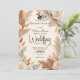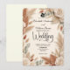 Invite guests with warm earthy tones, watercolor pampas grass, cream roses, and classic calligraphy set against a rustic printed paper grain background.This botanical layout features a warm, earthy color palette highlighting a simulated muted tan and soft rust-orange floral arrangement. The visual hierarchy centers on graceful cursive script, which is framed by watercolor illustrations of dried palm fronds, cream-toned roses, and sage green foliage. The background relies on soft, diffused shading to simulate a rustic, tactile finish. Please note: This is a flat printed image with a printed paper grain effect, not actual raised material.