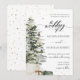 Boho Rustic Christmas Tree Lights Winter Holiday Wedding Invitation. Bohemian Style Drop Botanicals Invitation with Elegant and Simple boho Rustic Tree and Pine Botanicals in Hand-printed Watercolor. The Sage Green background color is gorgeous for boho weddings and Christmas weddings. Simple, printable invitation for holiday and winter weddings.