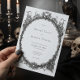 Announce your special day with this elegant vintage gothic ornate oval frame design with a skull motif. This unique black and white wedding invite is perfect for couples seeking a sophisticated, classic, or dark aesthetic for their memorable celebration. Fully customizable, it sets a dramatic, vintage aesthetic and romantic tone for your ceremony. Created by Simply Farmhouse Press.