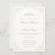 A white ivory color Islamic Muslim wedding invitation card to send out to your family and friends to celebrate this special day. This nikah ceremony invite card has a gold romantic script font with a vintage acanthus leaf filigree decoration in the corner of the frame. You can personalize this design with the help of the Design Tool on Zazzle. You can edit the event details like date of the nuptials, the venue address and all the other information that is written. This is a printable template but you can have it as an instant download if you prefer a sustainable option. Arabic calligraphy. Luxury wedding stationery. Copyright.