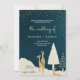 Elegant wedding invitation with gold deer and trees on a dark teal background, featuring text for Richard and Sophia's event. The back is solid teal.