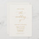 Celebrate your special day with this elegant wedding invitation featuring refined gold calligraphy on a soft ivory background. Designed in a timeless fine art style, this invitation combines graceful script typography with a clean, minimalist layout that feels both romantic and sophisticated.