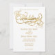 Convites Elegant White and Faux Gold Calligraphy Wedding