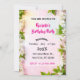 Celebrate your special day with this elegant white cherry blossom invitation. Featuring delicate spring flowers and green leaves on a soft pastel pink background, this floral design is perfect for romantic birthday parties. Easily customise the text for a unique touch.
