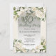 Celebrate a milestone birthday with timeless elegance. This sophisticated 80th birthday party invitation features a soft botanical frame of white gardenia and lily florals and delicate greenery surrounding a refined sage green background.