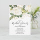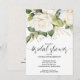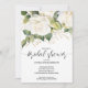 A bridal shower invitation features white roses, green and gold leaves with your details in chic lettering and room to add additional information on the back. MATCHING items in our collection.