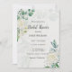 Elegant watercolor floral bridal shower invitations featuring white roses.