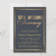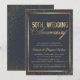 Convite moderno de aniversário de 50 anos de casamento em dourado e azul-marinho.